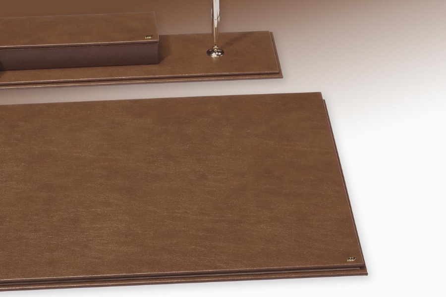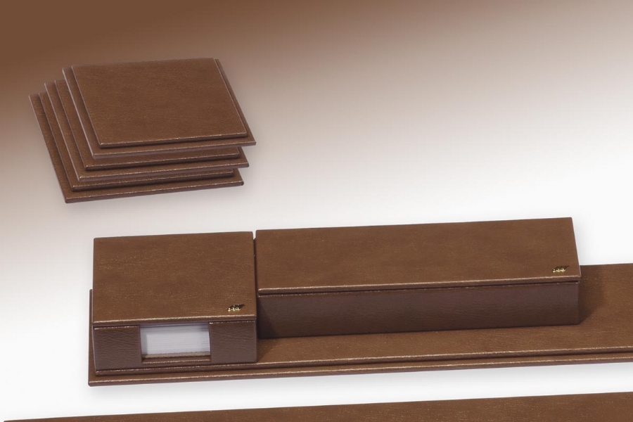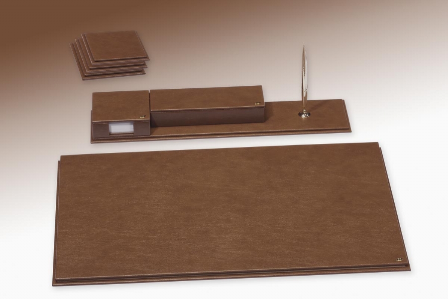This deskset, especially made of artificial leather with leather look, is combined with different lines and completely hand workmanship. It has 40 different colors to choose from and 20 pieces to choose from.