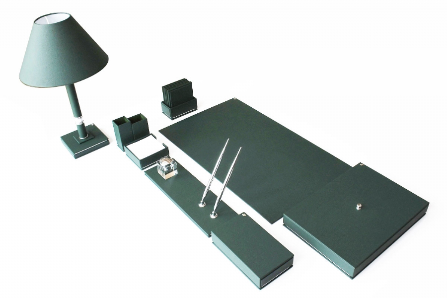 This desk set prepared with carefully selected Italian leather; perfect hand workmanship is integrated and enriched with the accessories used. Its pad is made of flexible material and provides a soft use. This luxury table set prepared for elite offices has 3 different leather colors.