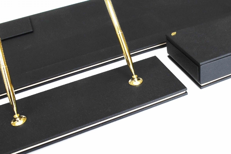 This desk set prepared with carefully selected Italian leather; flawless handwork is integrated and enriched with the accessories used. This luxury table set prepared for exclusive offices has 40 different leather colors.