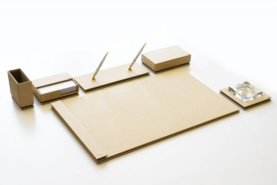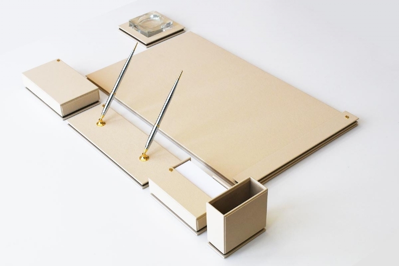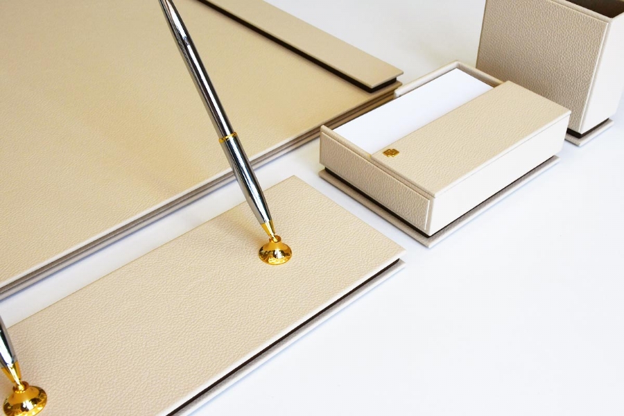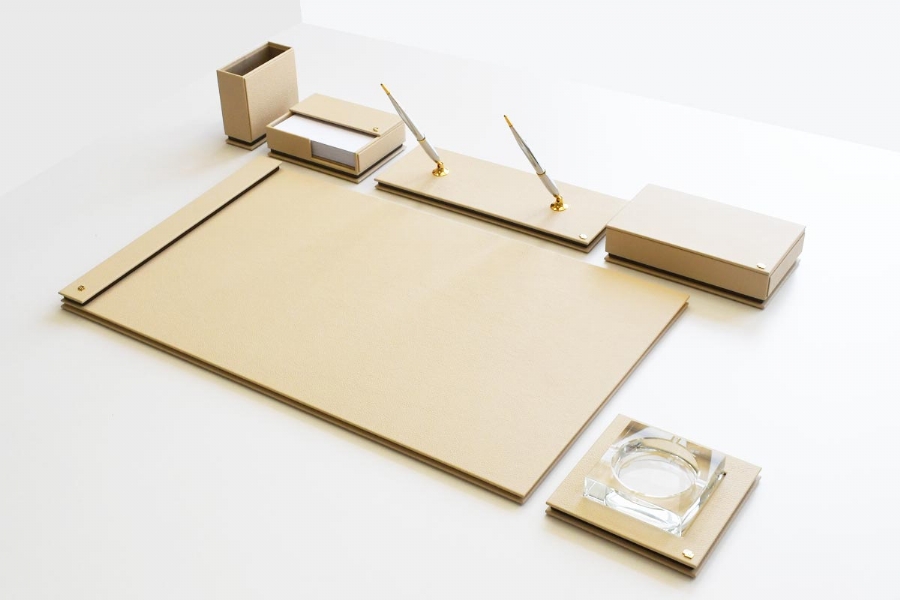 This desk set prepared with carefully selected Italian leather; flawless handwork is integrated and enriched with the accessories used. This luxury table set prepared for exclusive offices has 40 different leather colors.