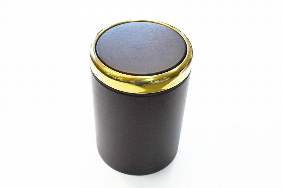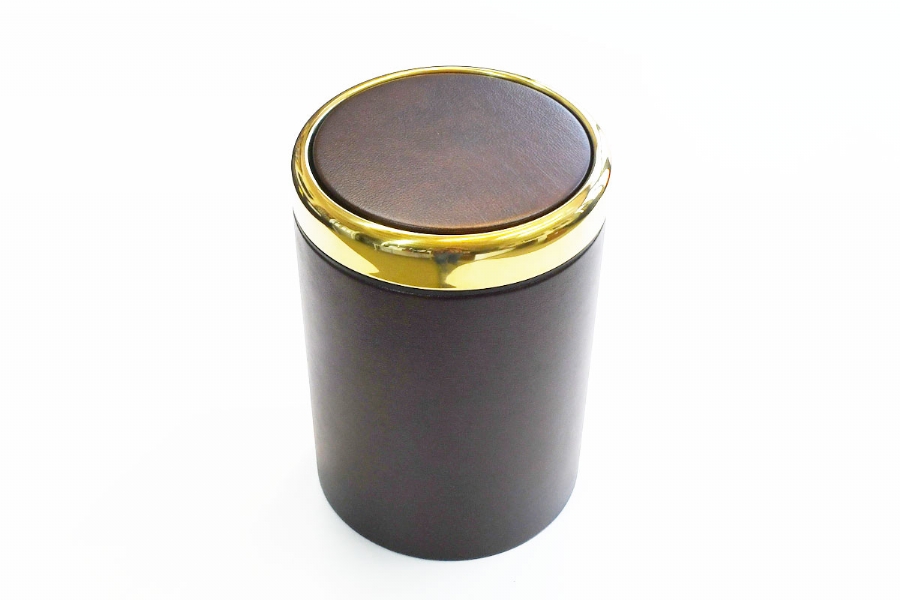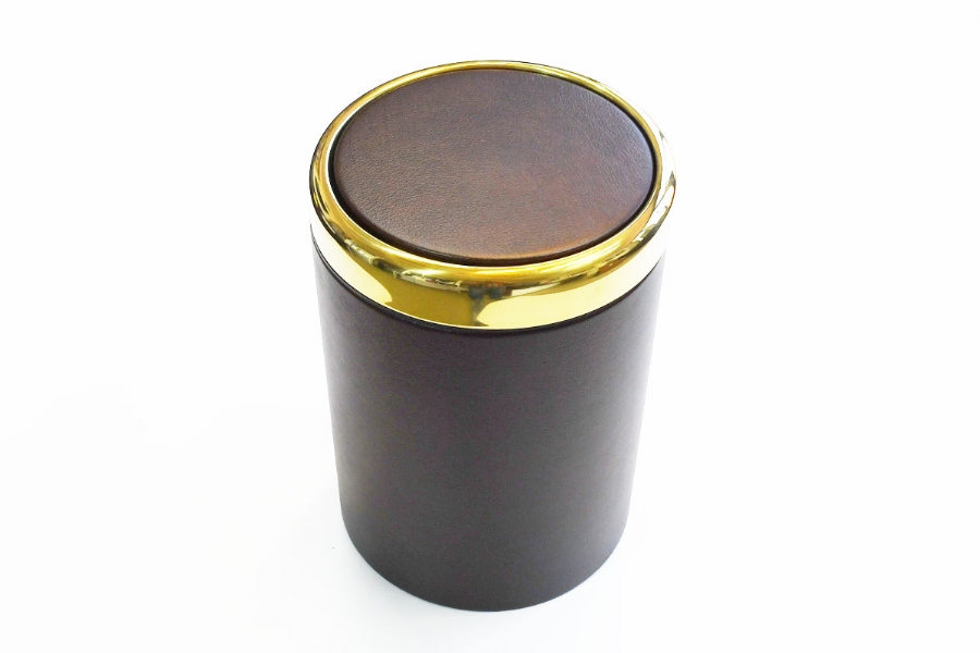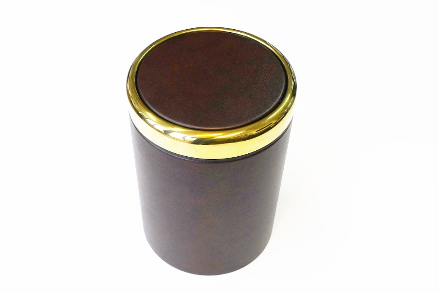 This chrome and leather trash bin, prepared from carefully selected Italian calf leather, is produced entirely by hand workmanship. The inner part is plastic and has a structure that can be removed and cleaned. There are 40 different leather colors.