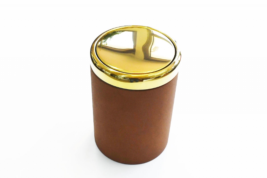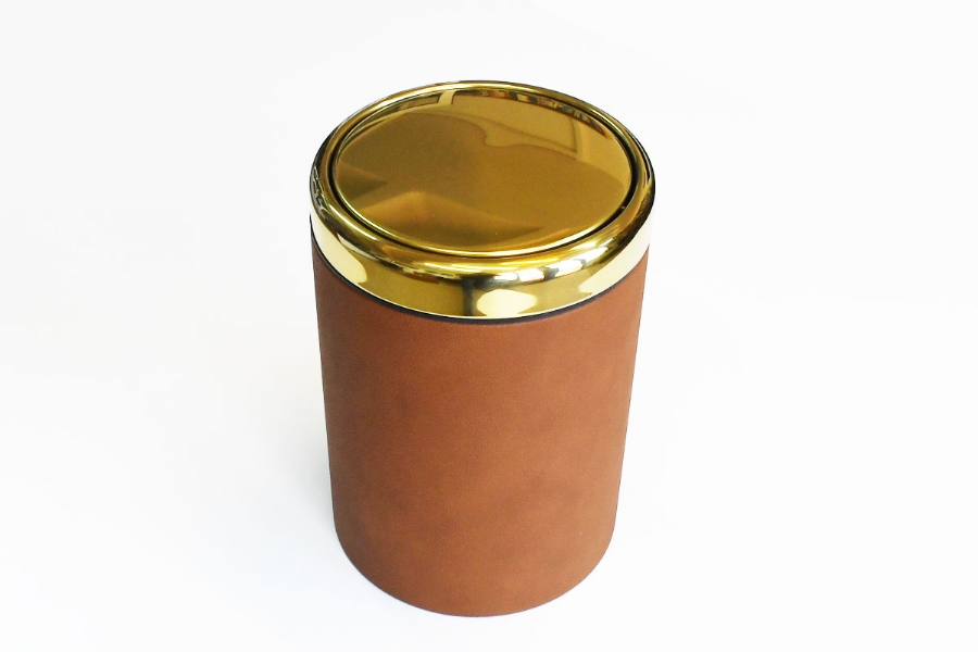 LEATHER & CROME TRASH BOX - 39233