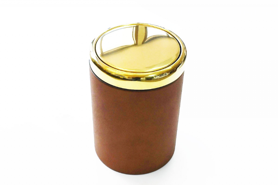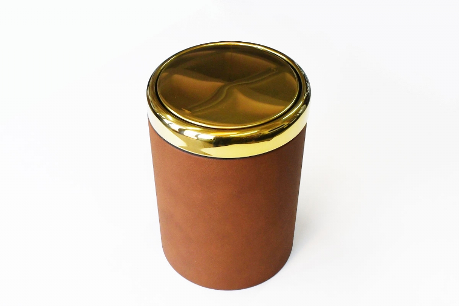 This chrome and leather trash bin, prepared from carefully selected Italian calf leather, is produced entirely by hand workmanship. The inner part is plastic and has a structure that can be removed and cleaned. There are 40 different leather colors.