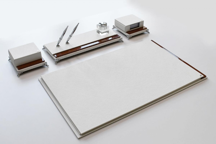One of the best examples of classic Italian leather and Chrome metal parts, this desk set; It reflects elegance with its flawless handcraft and special leather. These luxury table sets, which are indispensable accessories of classical offices, have forty different color options.