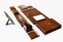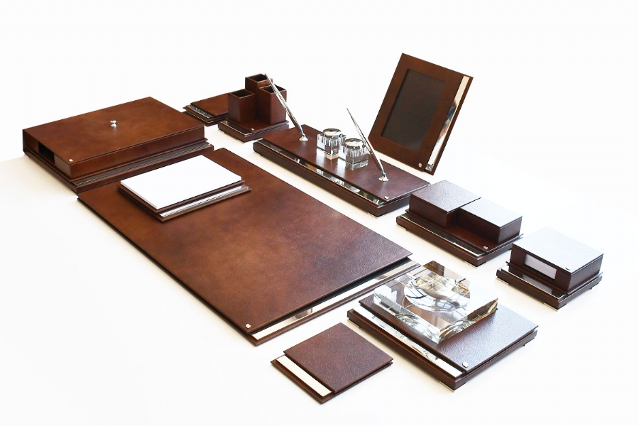 The elegant combination of Italian leather and Crom plated metal parts visually reflecting the distinctness, is a special set along with its crom plated metal parts and lines out of the ordinary rank.This meticulous handmade set is available at different colors.