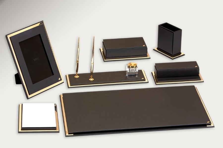 GOLD AND LEATHER DESKSET - SMART - 96511